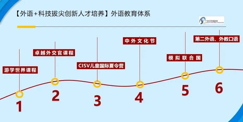 天河外国语学校实施“外语+科技”拔尖创新人才路径,为我国“一带一路”和国际教育示范区建设提供人力资源后盾。不仅如此,学校更有“英才计划”青年领袖课程、信息学奥赛队、人工智能校队等平台,让创意和兴趣收获更大的力量,让每一位学子的创意与兴趣都找到生长的沃土。